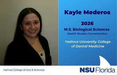 My time at NSU was instrumental in preparing me for my future career (and current one!) by offering a strong academic foundation paired with meaningful professional experiences. The M.S. program greatly expanded my scientific understanding and exposed me to numerous advanced topics, setting me up for success in professional school! Serving as a BIOL 1500 TA helped me master fundamental biological concepts while developing my teaching and leadership skills. Through roles like Shark Preview Leader and tutoring, I learned how to communicate effectively, support others, and manage responsibility. These skills continue to shape my path toward medicine and will greatly serve me as a physician. One of the things I appreciated most about NSU was the sense of community and support from faculty and peers! My message to current students is to embrace EVERY opportunity, especially the ones that push you outside of your comfort zone. These are the opportunities that help you grow the most!