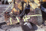 Cut coral with yellow tape labled I. Location: Refinery Reef