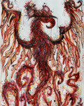 This piece, Nacido Del Fuego, was produced in 2022 for an exhibition in Miami, FL where it was unveiled in honor of a local music performer. It incorporates mythological themes with Eastern and Street Art influenced imagery and various approaches to free form art, such as Los Angeles-based Korean-American painter David Choe. It emphasizes movement and color and uses the symbol of the phoenix to convey themes of rebirth through the ashes of personal challenges and perseverance. To further the metaphor, the piece was made in a setting of darkness to more fully capture the idea of rebirth from strife and personal darkness, as well as from the precipice of the unknown.