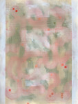 Thread of Resilience illustrates this influence and utilizes it to showcase a complex balance between widespread fluidity and the subtle linear forms seen in the three faint squares in the center and smaller red squares scattered throughout, suggesting a transcendence of compartmentalized identities.