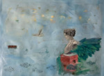 This piece, Habana con alas color de mar, Habana con alas color de mar, represents his life-changing experience crossing the sea from Cuba to reach the United States. It serves as a tribute to the city he left behind, Havana, represented by the Classical female bust. It is also a tribute to those who did not survive the journey. Lastres has described the emotion of seeing empty rafts and boats in the middle of the sea during the dramatic, storm-filled voyage in August 1994, which here is represented by the empty vessel. As with Liberación, Habana con alas color de mar shows Lastres ability to convey the intense and long-running struggle for freedom of the Cuban people, their relationship with the United States, and the sacrifices made in search of a better life.